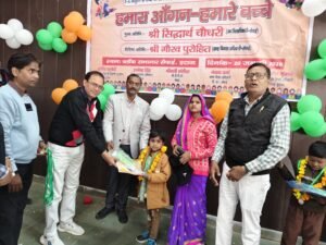 हमारा आंगन हमारे बच्चे’ कार्यक्रम निपुण भारत मिशन और राष्ट्रीय शिक्षा नीति 2020 के तहत, पूर्व-प्राथमिक और बुनियादी शिक्षा को मजबूत करने, बच्चों में जागरूकता बढ़ाने, और सामुदायिक भागीदारी को बढ़ावा देने के लिए उत्तर प्रदेश जैसे राज्यों में आयोजित किया जाने वाला एक उत्सव और अभियान है, जिसमें आंगनबाड़ी कार्यकर्ताओं, शिक्षकों और अभिभावकों के साथ मिलकर छोटे बच्चों (3-6 वर्ष) को गुणवत्तापूर्ण शिक्षा से जोड़ा जाता है, उनके कौशल का विकास किया करना है। और “निपुण” बच्चों को सम्मानित किया जाता है.