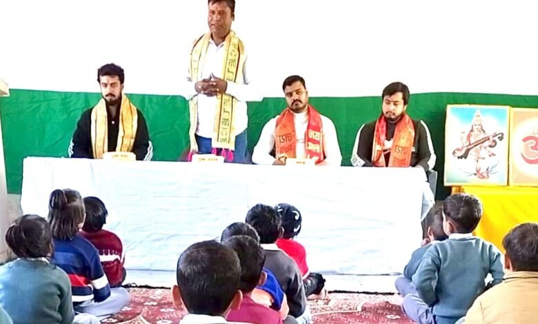 मुख्य वक्ता राष्ट्रीय स्वयंसेवक संघ के जिला प्रचार प्रमुख वैभव भदोरिया ने पुलवामा हमले में शहीद वीर सपूतों को स्मरण करते हुए कहा कि उनका बलिदान हमें राष्ट्रप्रेम, अनुशासन और सेवा भाव का संदेश देता है। उन्होंने बच्चों को स्वच्छता, पर्यावरण संरक्षण, पशु-पक्षियों की देखभाल का महत्व समझाया तथा कहा कि अच्छी शिक्षा ग्रहण कर, सही मार्ग पर चलकर, बड़ों और गुरुजनों का सम्मान कर ही सच्ची राष्ट्र सेवा की जा सकती है। उन्होंने बच्चों से आग्रह किया कि भविष्य में जो भी कार्य या व्यवसाय मिले, उसे ईमानदारी और सेवा भाव से करें।